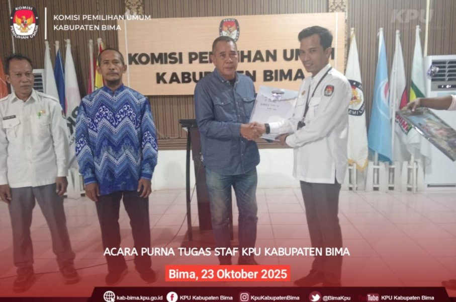 KPU Kabupaten Bima menggelar acara pelepasan untuk 2 orang Pegawai Sekretariat KPU Kabupaten Bima yang telah menjalani purna tugas, Kamis (23/10) bertempat di Aula Kantor KPU Kabupaten Bima.