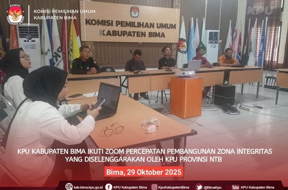 KPU Kabupaten Bima ikut serta dalam Zoom Meeting “Langkah-Langkah Strategis Percepatan Pembangunan Zona Integritas” yang digelar KPU Provinsi NTB, Rabu (29/10/2025).