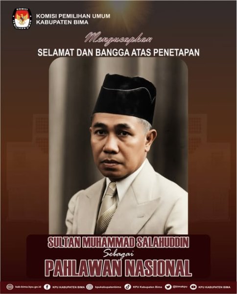 Selamat dan Bangga atas ditetapkanya Sultan Muhammad Salahuddin sebagai Pahlawan Nasional asal Bima Nusa Tenggara Barat.