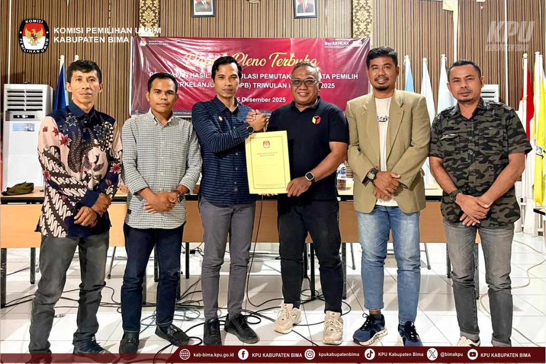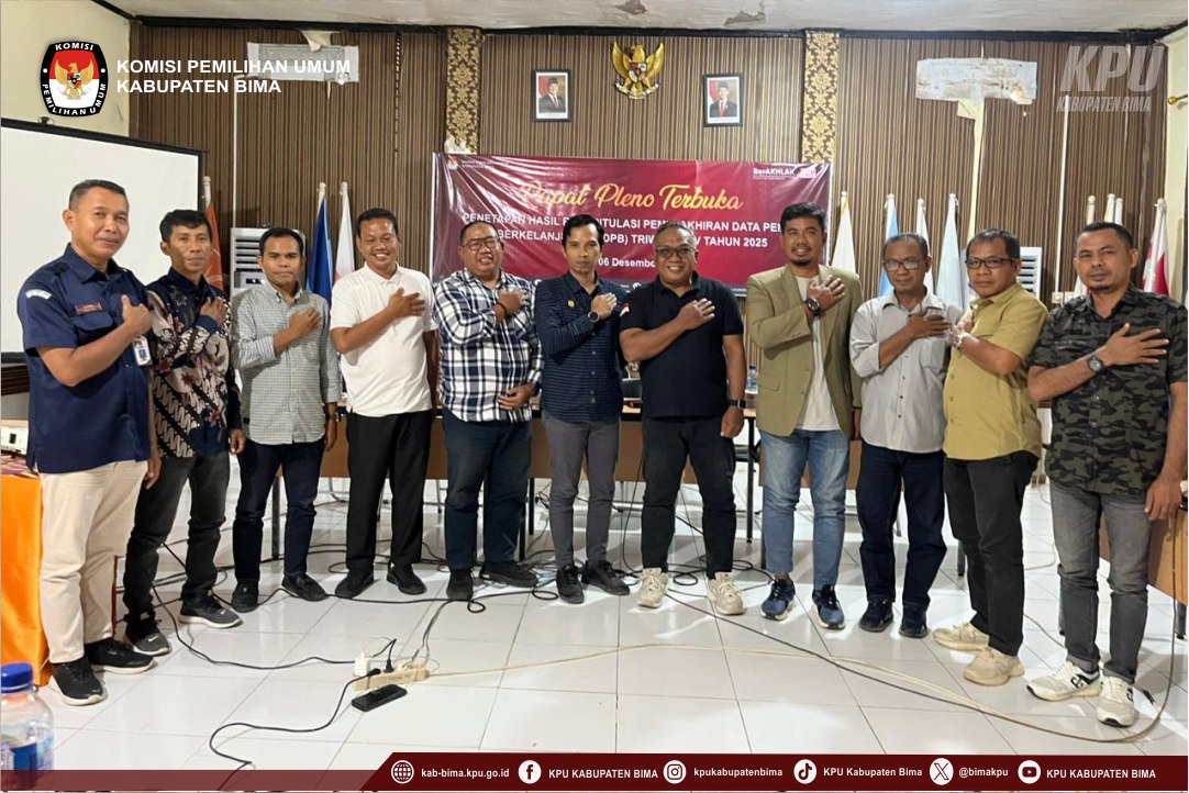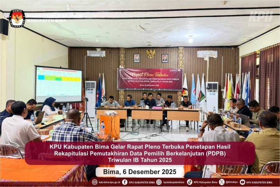 Komisi Pemilihan Umum (KPU) Kabupaten Bima menggelar Rapat Pleno Terbuka Rekapitulasi Pemutakhiran Data Pemilih Berkelanjutan (PDPB) Triwulan IV Tahun 2025