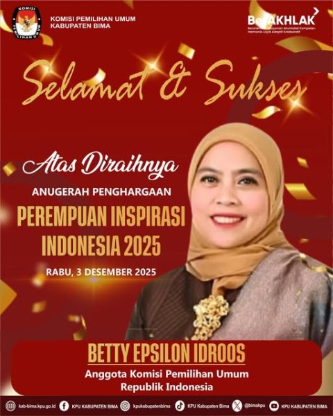 Selamat dan Sukses kepada Ibu Betty Epsilon Idroos Anggota KPU RI, atas diraihnya anugerah penghargaan Perempuan Inspirasi Indonesia 2025