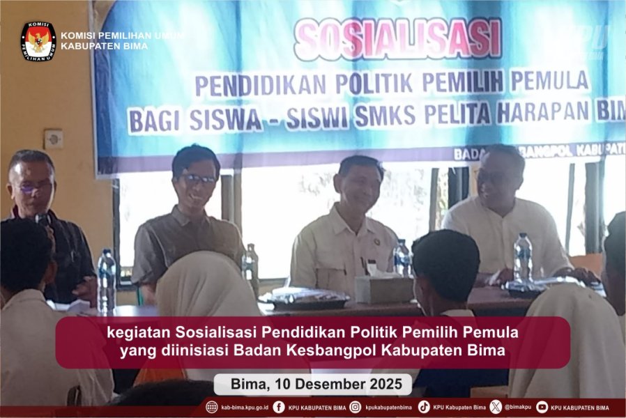 Hadir dalam kegiatan ini Kepala Badan Kesbangpol Kabupaten Bima bersama tim pelaksana acara dan Ketua Bawaslu Kabupaten Bima yang juga didaulat sebagai narasumber.