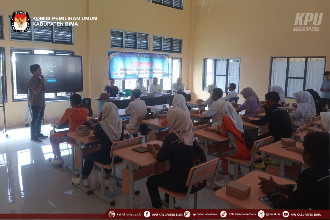 Pemilih Pemula di SMK Kesehatan Pelita Harapan Bima Kecamatan Bolo diberikan edukasi tentang nilai-nilai demokrasi dan kepemiluan oleh KPU Kabupaten Bima, Rabu (10/12).