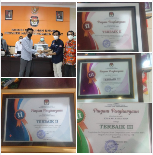 Dari 5 kategori penghargaan tingkat KPU Kabupaten/Kota se-NTB, KPU Kabupaten Bima meraih 4 penghargaan sekaligus. Yaitu terbaik III kategori Pemutakhiran Data Pemilih Berkelanjutan Terinovatif, Terbaik III Pengelolaan dan Pelaporan SPIP.