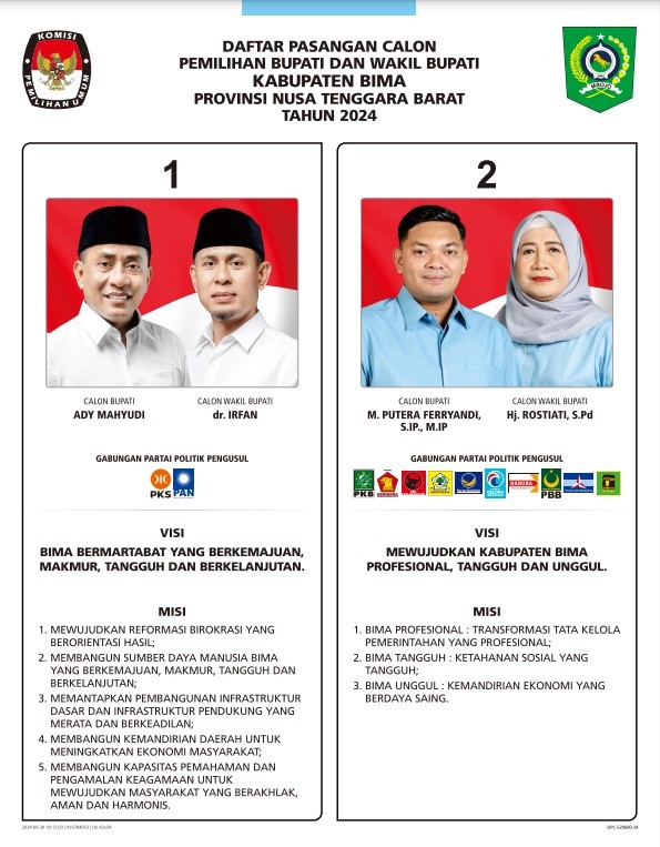DAFTAR PASANGAN CALON UNTUK PEMILIHAN BUPATI DAN WAKIL BUPATI BIMA TAHUN 2024TAHUN 2024