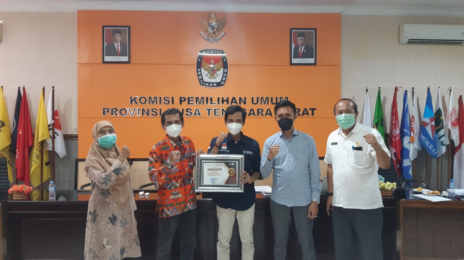 Piagam penghargaan diserahkan langsung Kantor KPU Provinsi NTB di Mataram oleh Ketua Divisi SDM, Parmas dan Sosdiklih, Agus Hilman usai kegiatan monitoring dan evaluasi JDIH. Hadir menerima penghargaan ini Anggota KPU Kabupaten Bima, Ady Supriadin dan Yuddin Chandra Nan Arif.