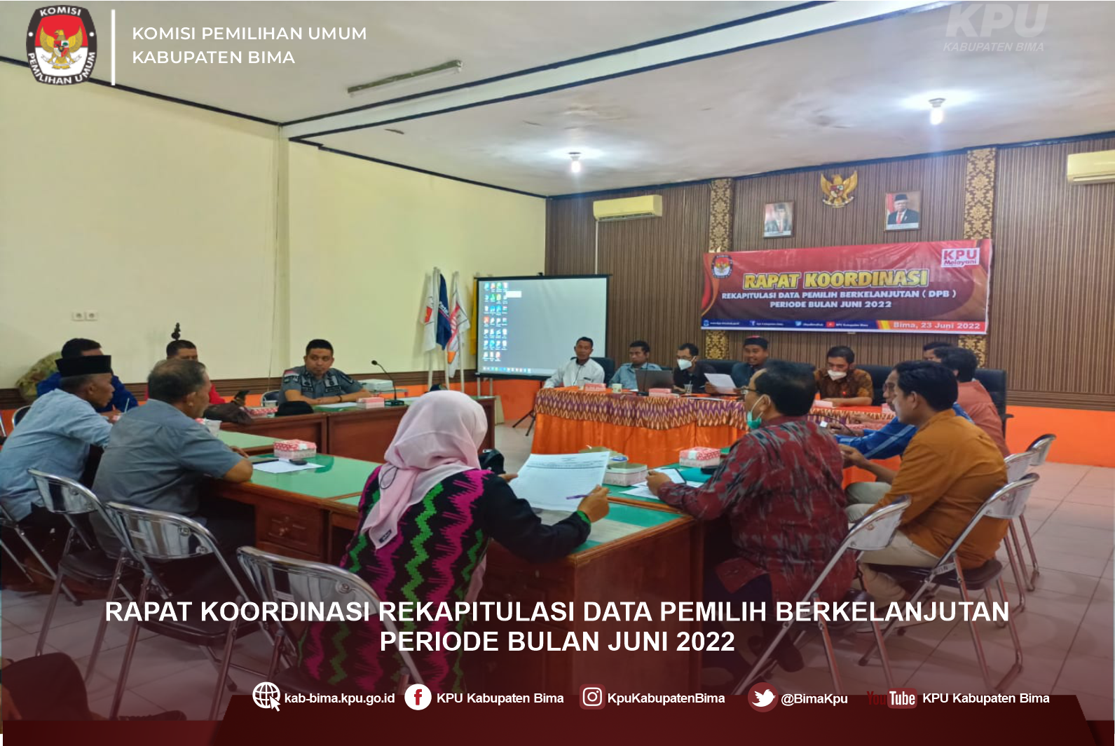 KPU KABUPATEN BIMA GELAR RAPAT KOORDINASI REKAPITULASI DATA PEMILIH BERKELANJUTAN PERIODE BULAN JUNI