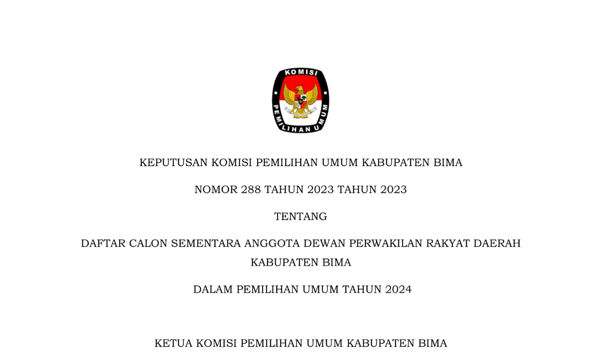 Berikut link Pengumuman DCS Anggota DPRD Kabupaten Bima pada Pemilu Tahun 2024 –