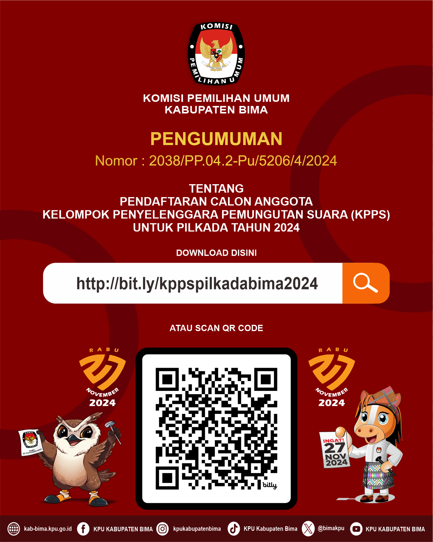 PENGUMUMAN PENERIMAAN PENDAFTARAN CALON ANGGOTA KPPS UNTUK PILKADA SERENTAK TAHUN 2024