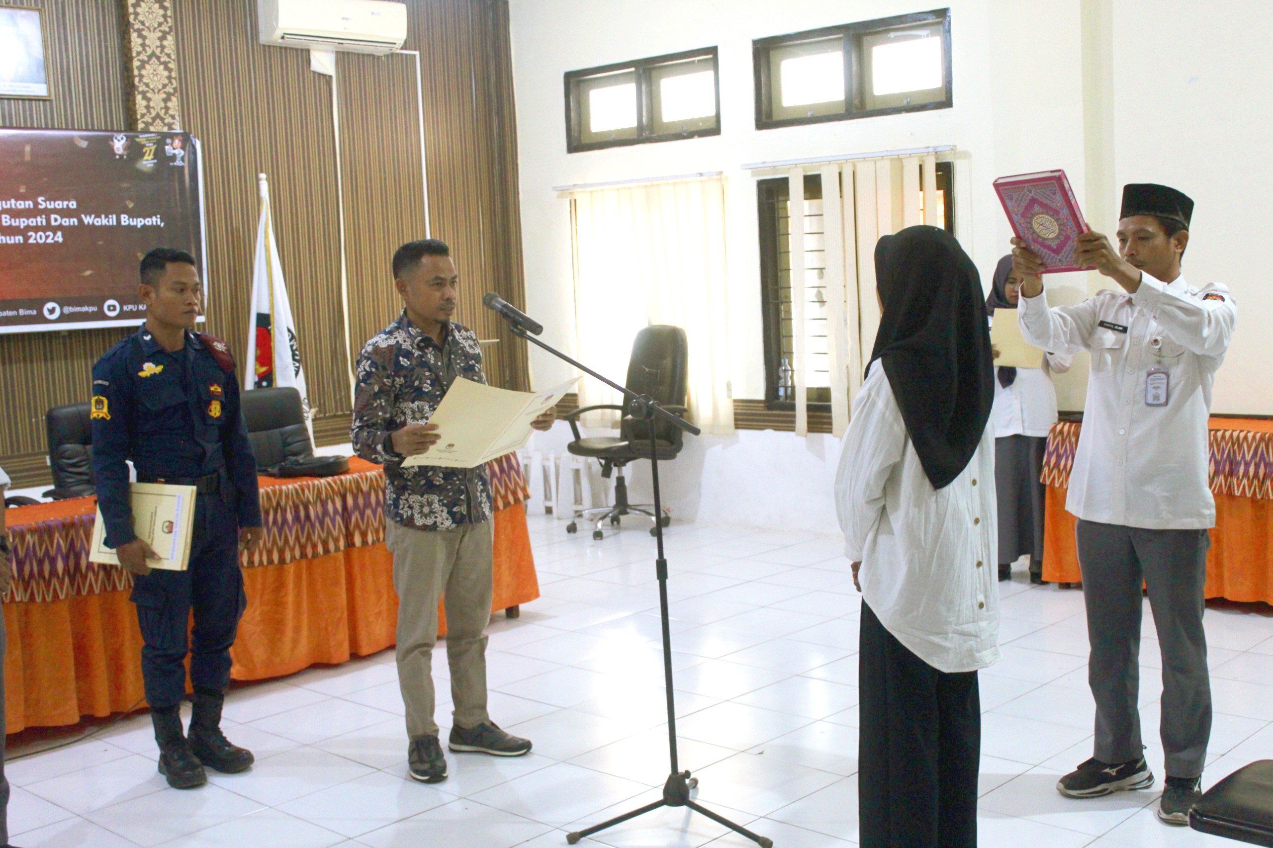 #TemanPemilih Plh. Ketua KPU Kabupaten Bima Abdurrahman memimpin Pengambilan Sumpah/Janji dan Pelantikan Pengganti Anggota Panitia Pemungutan Suara (PPS) Desa Tadewa Kecamatan Wera untuk Pemilihan Gubernur dan Wakil Gubernur, Bupati dan Wakil Bupati, dan Walikota dan Wakil Walikota pada Kabupaten Bima Tahun 2024, bertempat di Kantor KPU Kabupaten Bima, Senin (12/8).