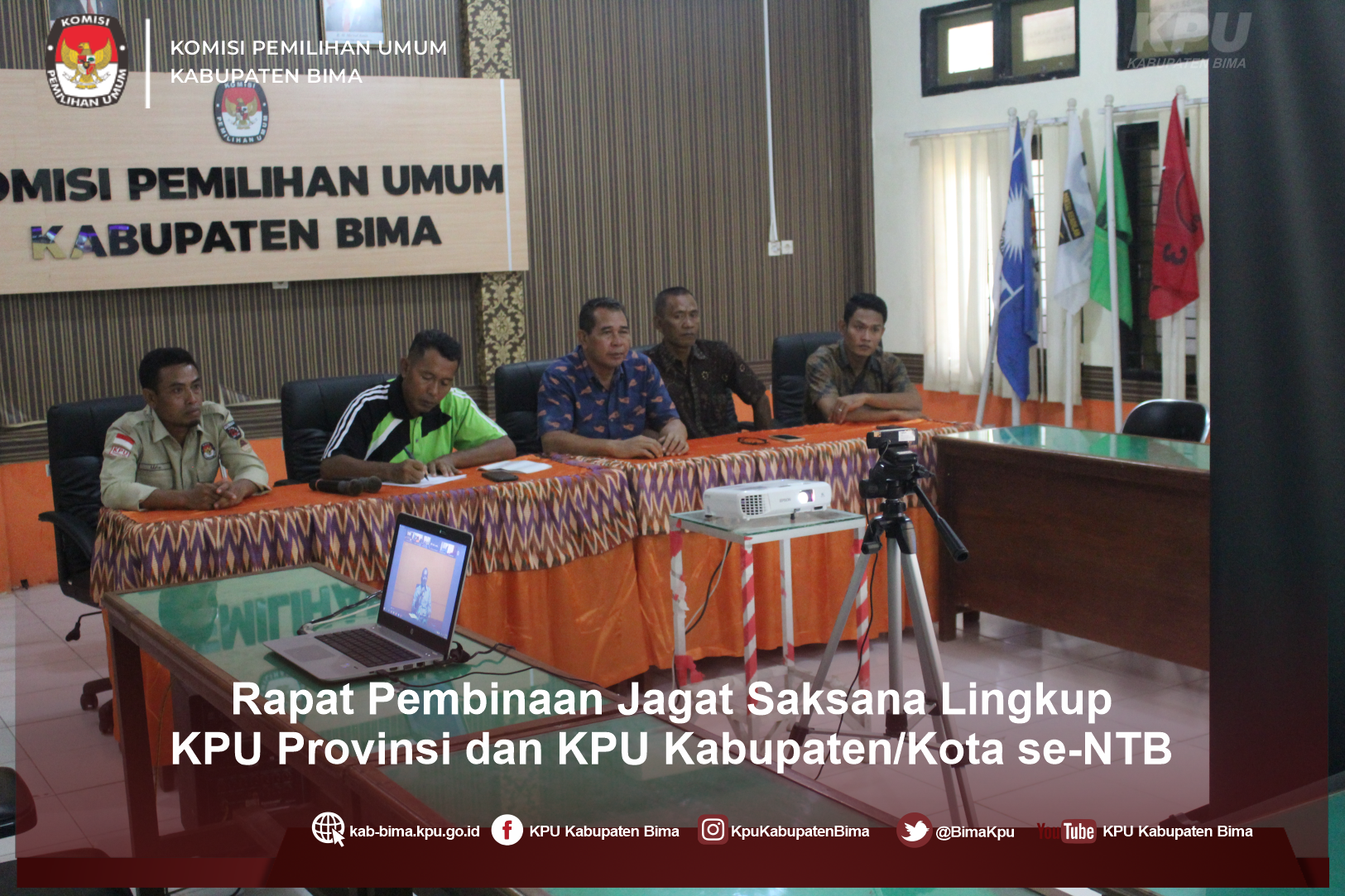 Dalam rangka pembinaan terhadap Jagat saksana terkait tugas dan tanggungjawabnya, KPU Kabupaten Bima mengikuti Rapat pembinaan jagat saksana melalui daring yang diikuti oleh sekretaris Se-Provinsi NTB kasubag terkait dan tenaga jagat saksana. Kegiatan tersebut dilaksanakan pada hari Jum'at tanggal 24 Juni 2022 pukul 14.00 wita di Aula Kantor KPU Kabupaten Bima.