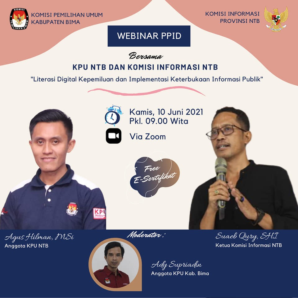 Demikian disampaikan Anggota KPU Provinsi NTB, Agus Hilman saat menjadi narasumber dalam kegiatan Webinar PPID yang digelar KPU Kabupaten Bima secara virtual via zoom, Kamis (10/6) pagi.