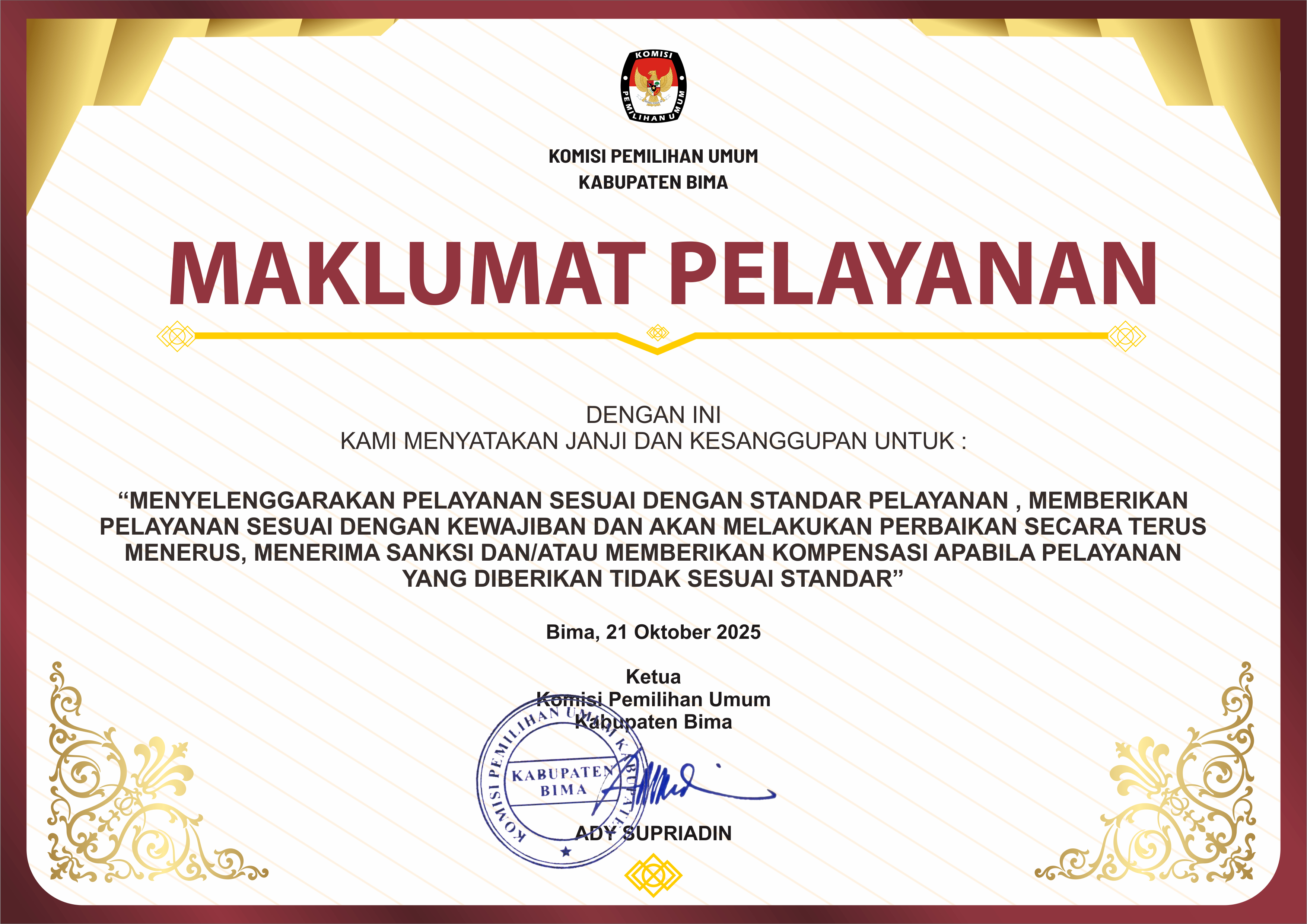 MAKLUMAT PELAYANAN KPU KABUPATEN BIMA
